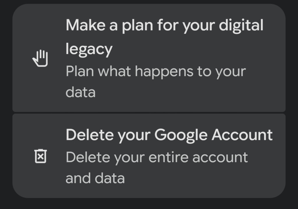 - повне видалення облікового запису Google — безповоротне знищення акаунта разом з усіма даними;