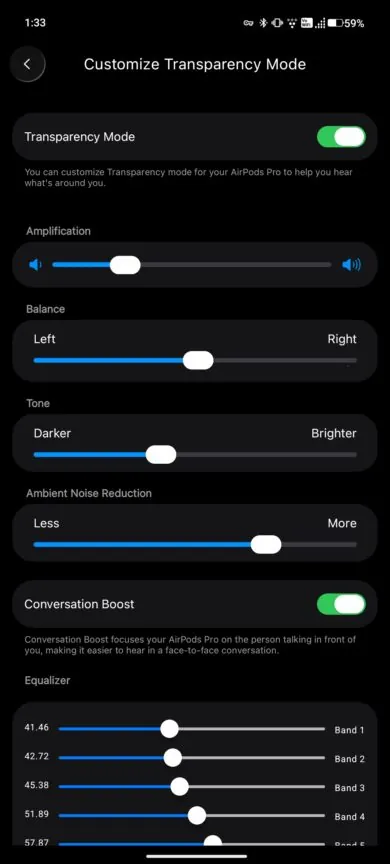 Застосунок також пропонує розширені можливості, зокрема тонке налаштування прозорого режиму, підтримку роботи з кількома пристроями, використання AirPods як слухових апаратів та опцію «прювати як пристрій Apple», яка імітує підключення до iPhone чи Mac і відкриває доступ до прихованих функцій, зазвичай недоступних на Android.