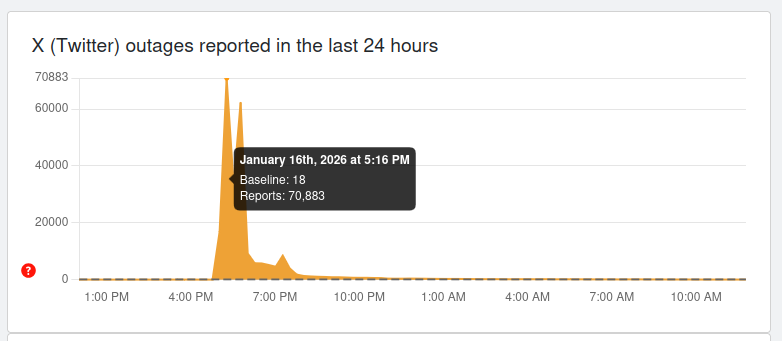У п’ятницю 16 січня X (колишній Twitter) зіткнулася з масштабним збоєм, через який користувачі по всьому світу не могли переглядати нові пости. Проблеми торкнулися як вебверсії X.com, так і мобільного застосунку, а також чат-бота Grok.