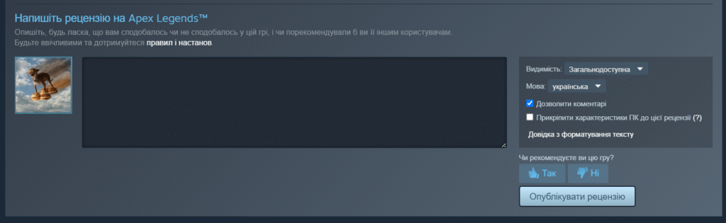 Раніше користувачі могли вручну вказувати конфігурацію свого комп’ютера в тексті відгуку. Тепер у формі публікації рецензії з’явився окремий прапорець, який дозволяє автоматично прикріпити технічні дані системи.