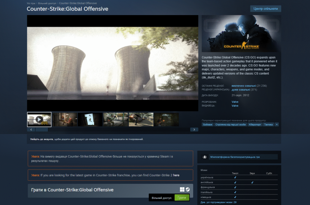 Чому CS:GO зникла після виходу Counter-Strike 2