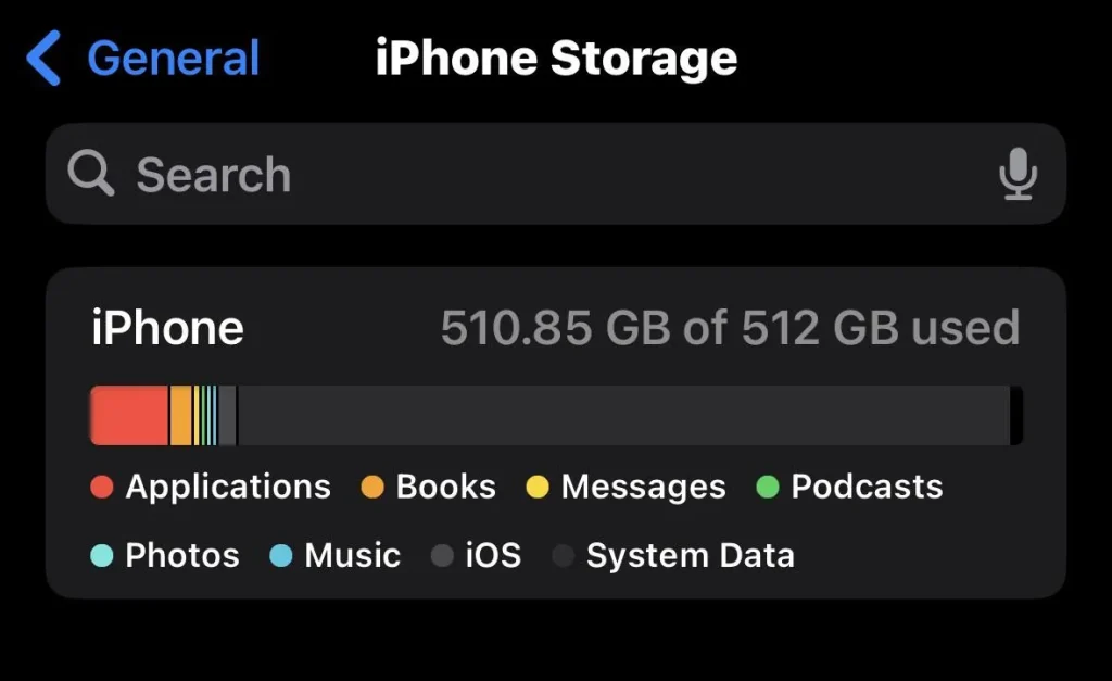 2. Дочекайтеся, поки iPhone відобразить детальну інформацію про використання пам’яті, а також перелік додатків, відсортованих за обсягом зайнятого простору.