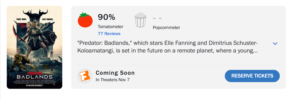 Новий фільм із культової серії про інопланетного мисливця — Фільм Хижак: Дикі землі — стартував із вражаючим рейтингом 90% на Rotten Tomatoes. Таким чином, стрічка посіла третє місце серед усіх фільмів франшизи «Хижак» за оцінками критиків, поступившись лише оригінальному фільму 1987 року та «Prey» 2022-го.
