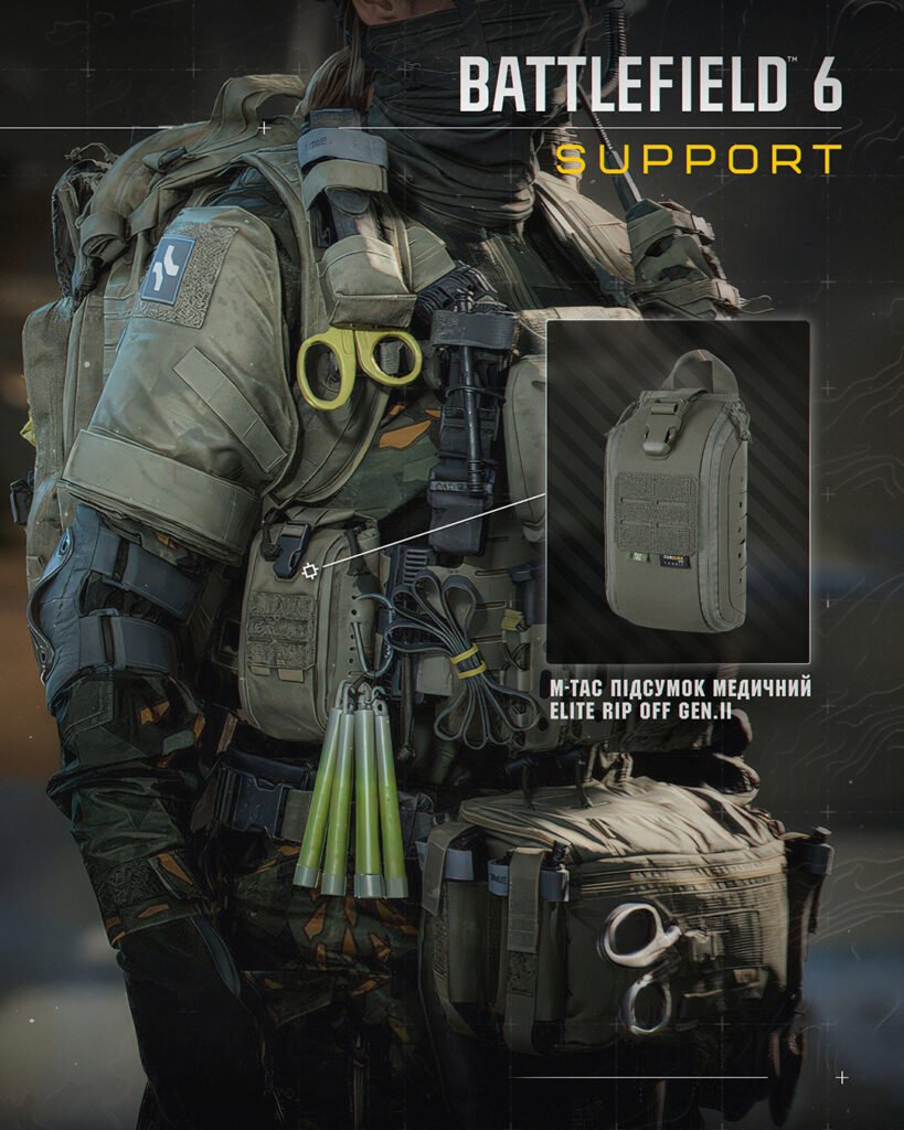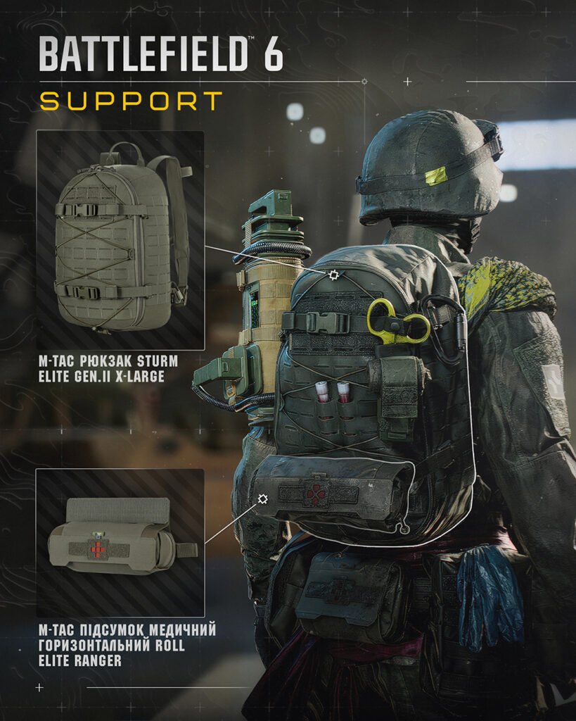 Розробники зі студії Battlefield Studios відтворили у грі сучасні зразки екіпіровки М-Тас, адаптовані під концепцію майбутнього поля бою. Така інтеграція демонструє, що бренд із українським корінням уже має вплив на глобальні тенденції у сфері військового спорядження.