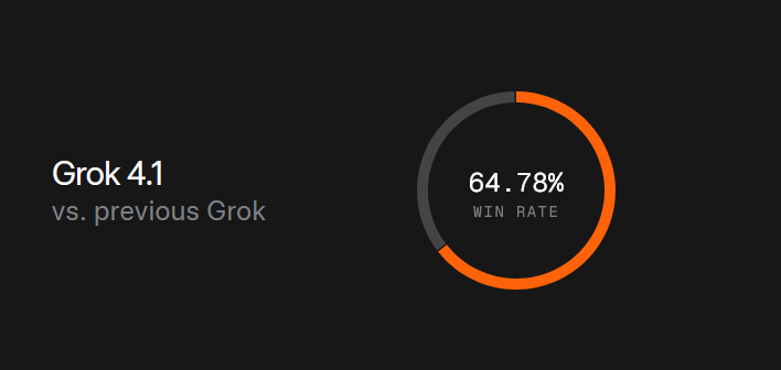Grok 4.1 виявився переважно кращим за попередню версію у 64,78% випадків, що стало основою для рішення про публічний реліз.