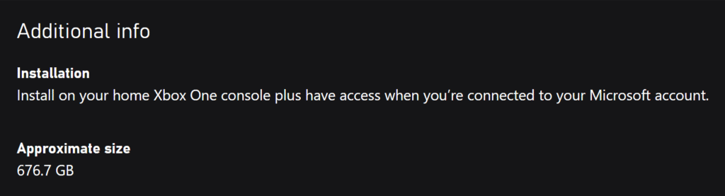 З часом, після виходу оновлень, доповнень і мультиплеєрного контенту, загальний розмір гри може зрости до 250–300 ГБ.