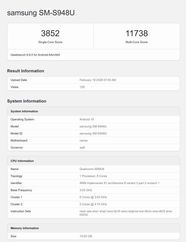 За даними тесту Geekbench 6, Samsung Galaxy S26 Ultra набрав: