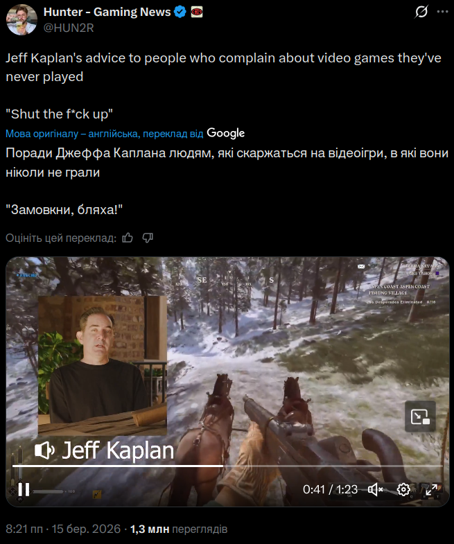 Колишній директор Overwatch Джефф Каплан різко висловився щодо гравців, які критикують нові ігри, навіть не плануючи в них грати. Його коментарі пролунали після анонсу нового проєкту The Legend of California від студії Kintsugiyama.