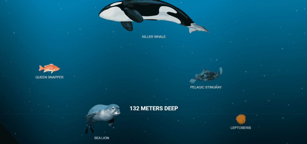 На кожному етапі подорожі ви бачите не лише поточну глибину, а й цікаві, часом неймовірні факти. Наприклад, ви дізнаєтесь, наскільки глибоко плавають китові акули, або ж де саме спочивають уламки «Титаніка». Чим далі ви просуваєтеся вниз, тим більш екзотичними стають форми життя: від загадкових біолюмінесцентних риб до істот, що виглядають так, ніби зійшли зі сторінок наукової фантастики. Ба більше, десь там, у найглибших точках Маріанської западини, на нас чекають досі невідомі науці види.